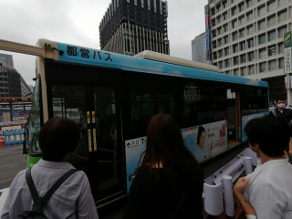 高速バスで帰りましょう。 藤枝駅行きが走っているんだよ。 |