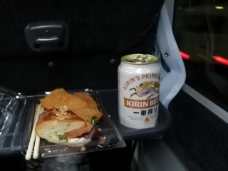 夜の車窓を楽しみながら ビールをいただきました。 |
